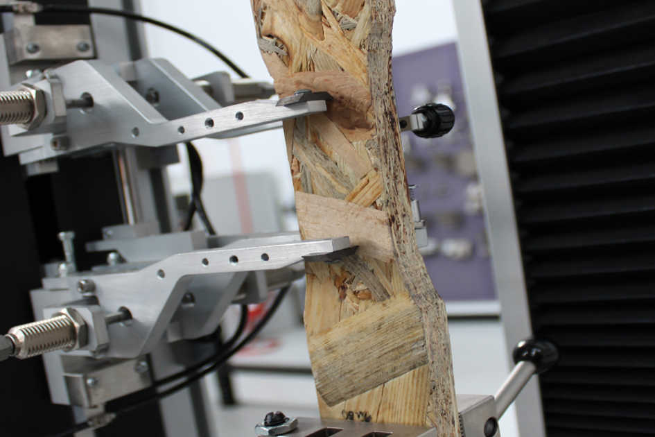 Es gibt viele auf Holz bezogene Versuche: Zugversuche, Druckversuche, Biegeversuche, Scherversuche, Ausreißversuche von Schrauben aus Platten, Delaminierung und mehr. Für Zugversuche eignen sich normale Keil- oder Zangenspannzeuge mit flachen Griffflächen und pyramidenförmiger Zahnung. Diese Spannmittel decken eine große Spanne verschiedenster Probendicken und Probenbreiten ab